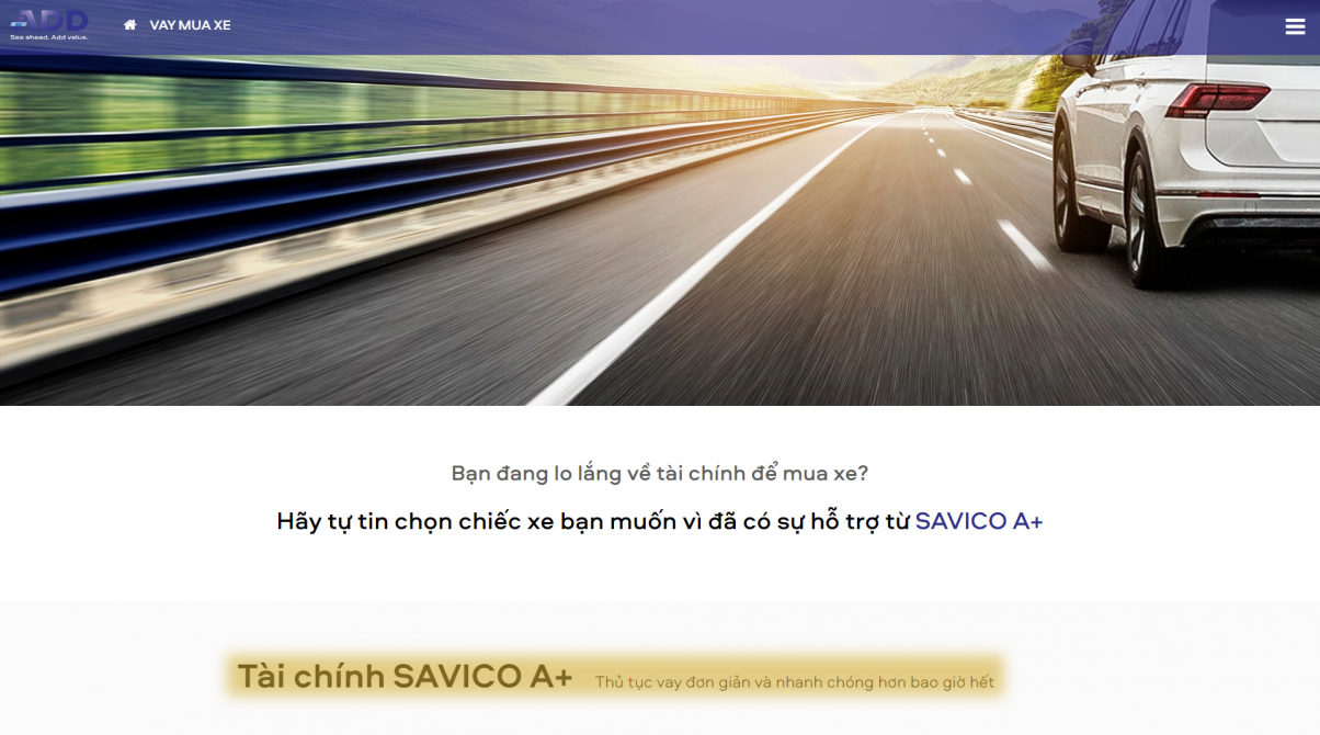 OpsGret design (UX/UI) and develop website addso.vn – Auto Loan, Car Insurance service provider through the Savico car dealer system.