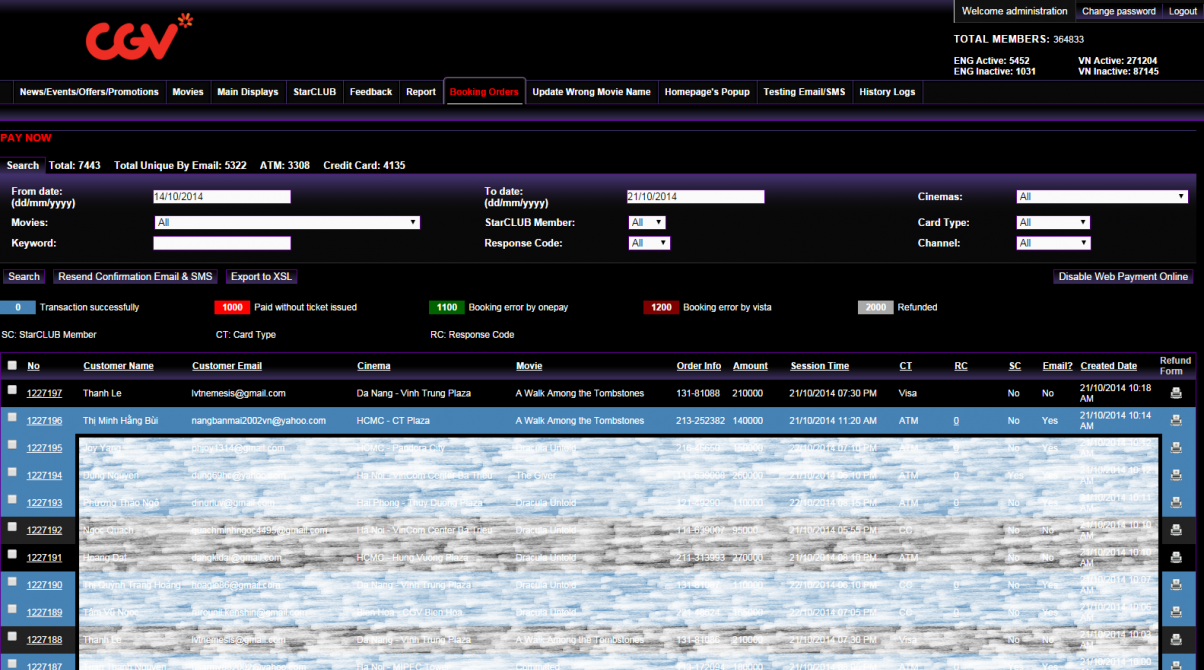 Hỗ trợ và xử lý các vấn đề kỹ thuật liên quan đến website CGV Cinemas Việt Nam