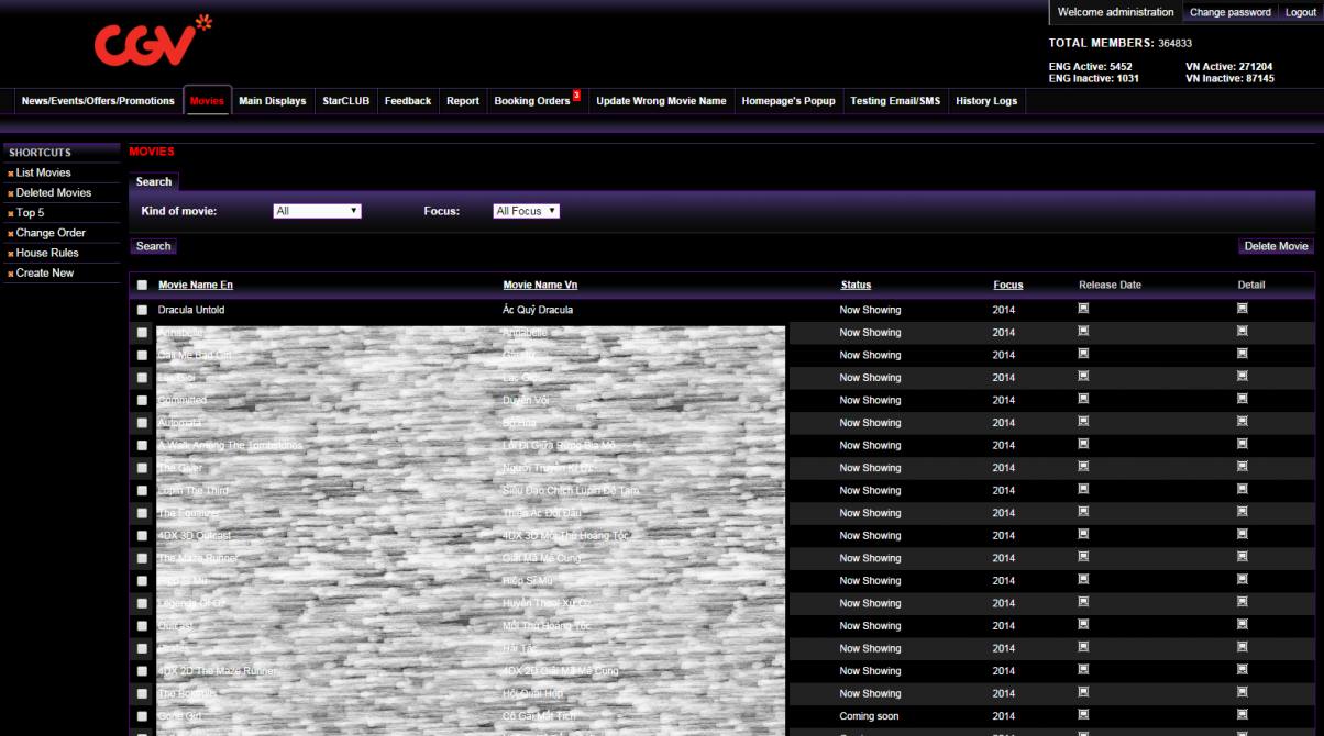 Chúng tôi làm việc với Ogilvy Việt Nam để hỗ trợ đội ngũ IT của CGV Cinemas Việt Nam trong việc quản lý website CGV, các cơ sở dữ liệu liên quan đến website và nền tảng lõi mua vé trực tuyến, hệ thống Vista Cinema Ticketing Software.